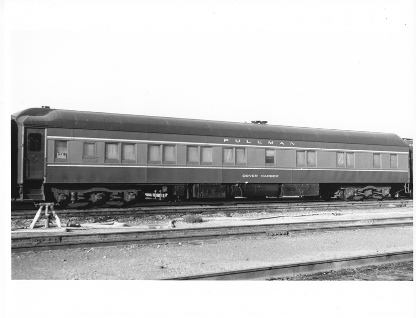 In March, 1934, the Maple Shade was recalled into the Pullman Company Shops. The car was rebuilt into six double bedrooms, a buffet, and a lounge, and was renamed the DOVER HARBOR. The DOVER HARBOR and eight other cars with this same configuration were built according to plan 4015 and were designated the Dover Series. Air conditioning, which was new to railroad cars at this time, was also installed. After rebuilding the car, which weighed 87 tons, was repainted to the standard Pullman green and gold livery that it wears today.